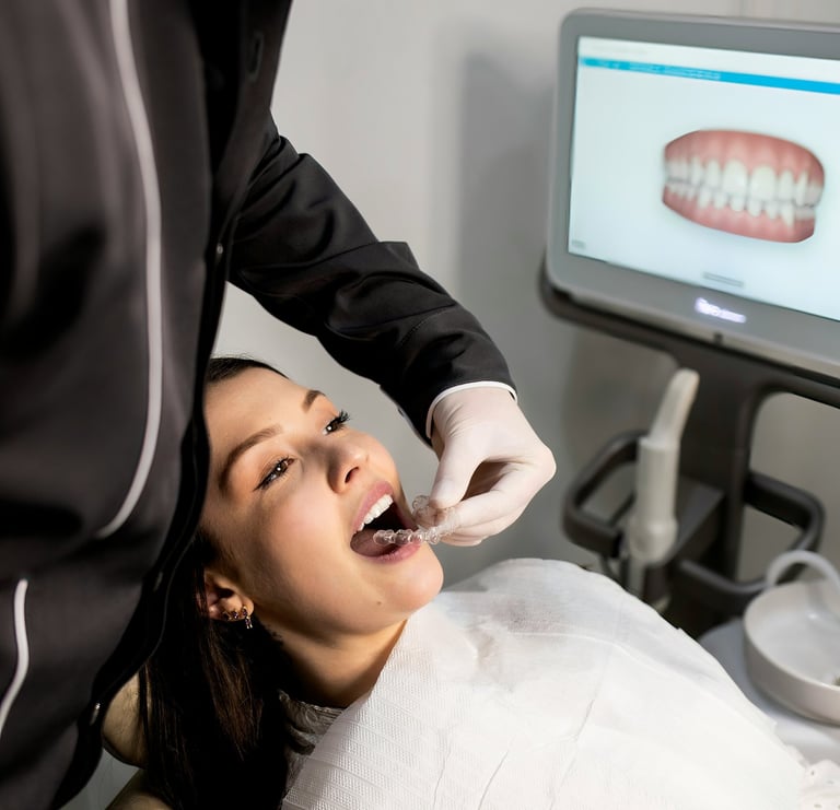 Utilizamos soluções ortodônticas modernas, incluindo alinhadores invisíveis, para alinhar os dentes de forma confortável e discreta.